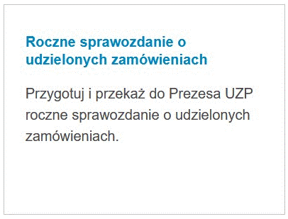 W celu utworzenia Rocznego sprawozdania należy wejść na stronę główną Platformy, następnie po zalogowaniu się wybrać kafelek „Roczne sprawozdanie o udzielonych zamówieniach”.